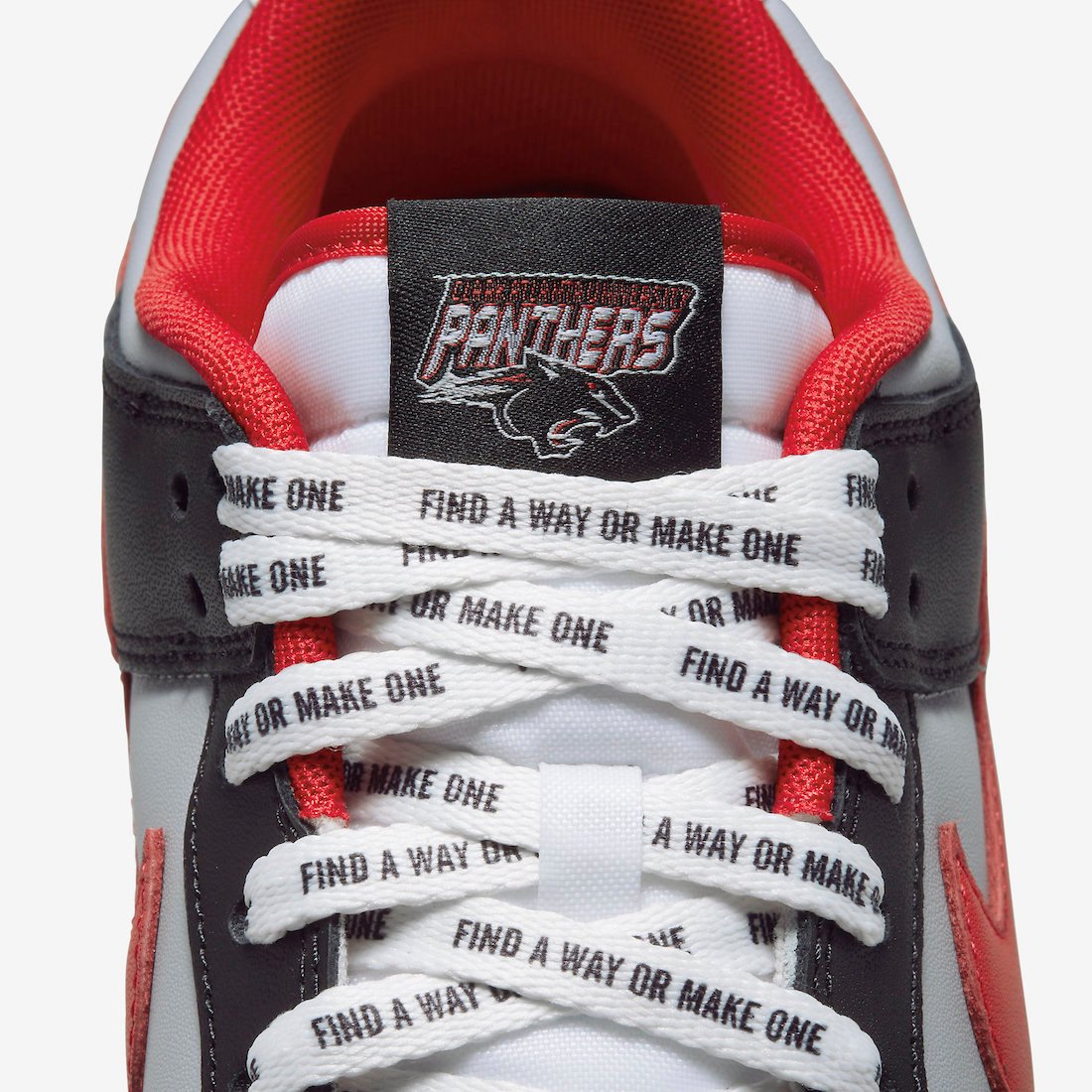 This Nike Dunk Low by CAU comes dressed in the schoolโs colors of White, Black, and Red. Details throughout connect to the schoolโs history, which consists of โFIND A WAY OR MAKE ONE,โ their motto, printed on the laces. The Panthers logo adorns the tongue and translucent outsole, and โClark Collegeโ is written on the inside of the tongue. Other details include โ1988โ embroidered on the heel tab, which nods to the year Clark College merged with Atlanta University to form Clark Atlanta University (CAU), and we have graphics on the insoles.
