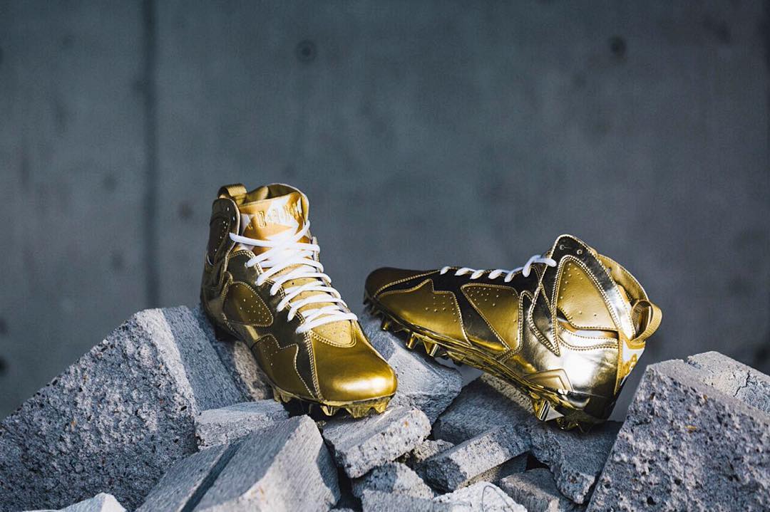 Charles Woodson, a Jordan Brand team member will be hanging up his cleats for good after the 2016 Pro Bowl. In honor of his 18 year NFL career, the brand has made him ‘Gold’ Air Jordan 7 Cleats for his final outing.