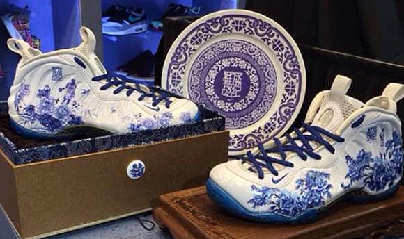 As you can see from the picture, the Nike Foamposite shown is inspired by the China dinnerware with a white base and blue designs.