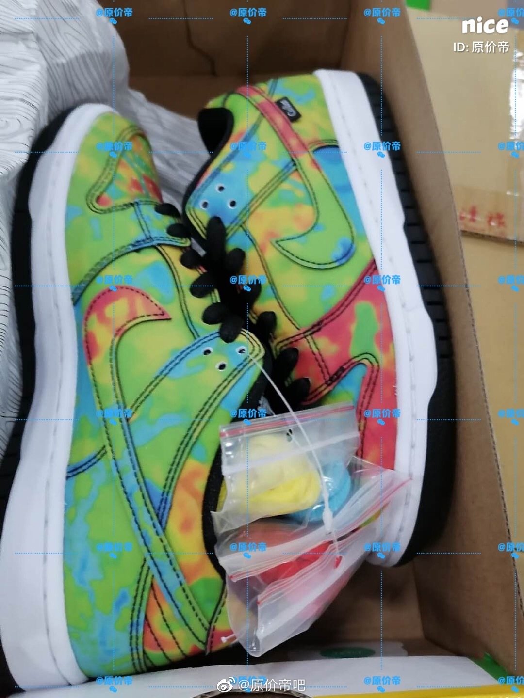 Looking closer the Civilist Nike SB Dunk Low comes with Black on the upper which is heat activated and showcases a thermal imagery which is done in shades of Green, Blue, Red and Yellow. In addition we have a small label with Civilist branding on the lateral side, White on the midsole and a Black rubber outsole.