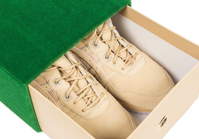 The duo will unleash two pairs, both of course being the Gel Lyte III and are known as Lavender and Sand. Inspiration has came from lavender grown straight from soil. Using premium materials, one pair comes with a lavender upper while the second in sand. Each will feature a white midsole while the outsole comes in tones from the other model. Special packaging will come with both, a slide out box with what looks like green astroturf covering it.