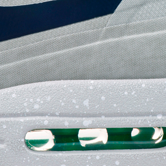 Most recently, new images of the CLOT x Nike Air Max 1 SP “Kiss of Death” have emerged. A closer look at the collaborative model highlight this style’s grey Hyperfuse upper, sockliner illustration which depicts the 12 meridians of Chinese medicine, an embroidered wreath at each back heel which signify “Shen”, a character representing the city of Shanghai, and finally, a translucent outsole that displays “two feet”. Other notable details come in the form of a speckled midsole, plus green glow and blue accents throughout.