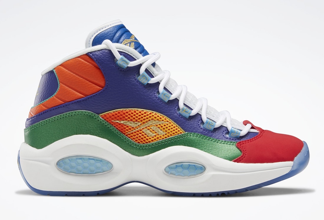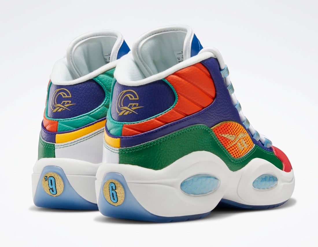 This Reebok Question Mid by Concepts is highlighted in a Multi-Color blocking that nods to the other Philadelphia 76ers, Los Angeles Lakers, Phoenix Suns, Toronto Raptors, Milwaukee Bucks, Minnesota Timberwolves, Vancouver Grizzlies, Portland Trailblazers, and the Boston Celtics. Next, we have CNCPTS branding down the eyelets, heel, and insoles. The numbers ‘9โ and โ6โ appear on the heels for the draft year and replace AIโs โ3.โ Finishing the look is an icy translucent outsole.
