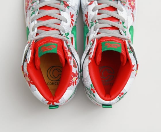 In addition to our detailed look at its “Black” counterpart, here are official images to tomorrow’s Concepts release of the Concepts x Nike SB Dunk High Pro “Ugly Sweater” in grey.