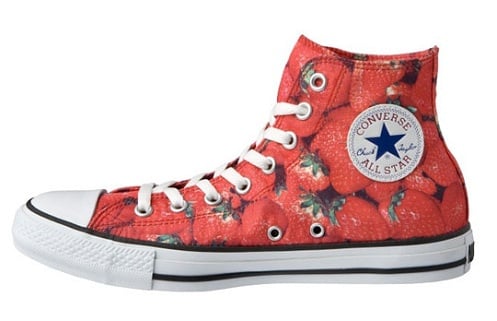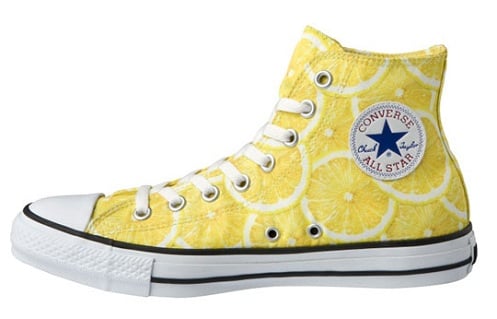 After showing you a “leather jacket” Converse All Star hi, we bring you a collection of that very Converse silhouette with a “fruity” influence. Pictured here is one Converse All Star hi in a yellow lemonade upper, and another in a red strawberry upper. These interesting colorways are being offered specifically by Converse Japan and a part of the line’s Spring/Summer 2011 sneaker collection.