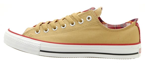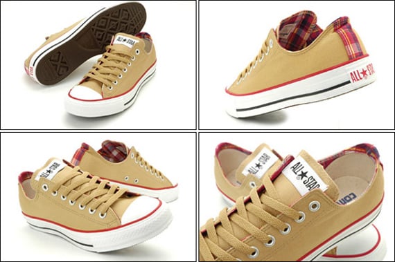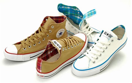 Cape-Codders and lumberjacks rejoice, here come two updated colorways of the ultra-classic Converse Chuck Taylor featuring plaid madras prints. Though the madras itself is seen most prominently in the shoes’ liner, the pattern also appears in the heel, adding a subtle touch of color to the midsole. The white and blue madras colorway will serve you well in spring, especially if you own a yacht, while the tan and red colorway will help you blend in with the neighborhood Brawny men.ย