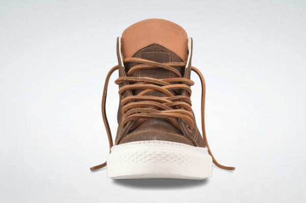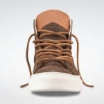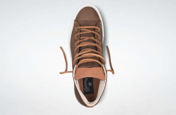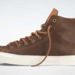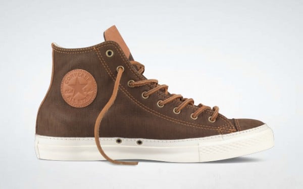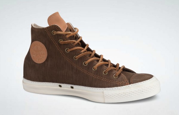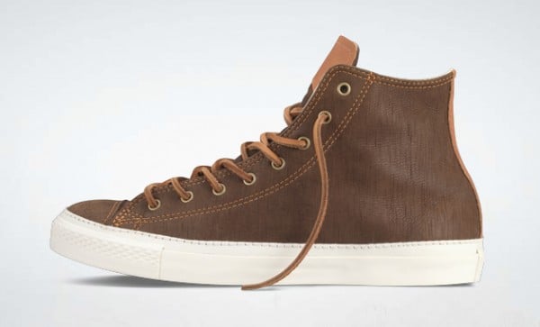 This Chuck features various tones of brown on the upper with a woodgrain look as an added effect. The leather badging and tan accent stitching and leather laces complete this look and is now available at Converse.