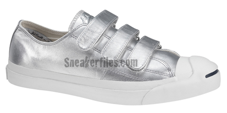 Straps have become all the rage in the sneakers whether it may be the introduction of the Air Jordan I (1) High Strap, Terry Kennedy’s Supra Society or the Converse Jack Purcell Triple V which sports a strapped design. Found on the Triple V is three velcro straps instead of laces. ย In addition to this design, this Jack Purcell sports a metallic silver finish on the upper with a white outersole and navy stripe at the forefront. The Jack Purcell Triple V will be in stores starting February 2009 retailing at $70.