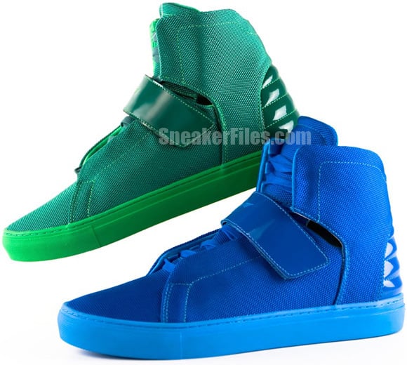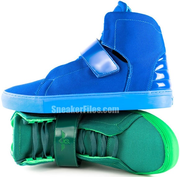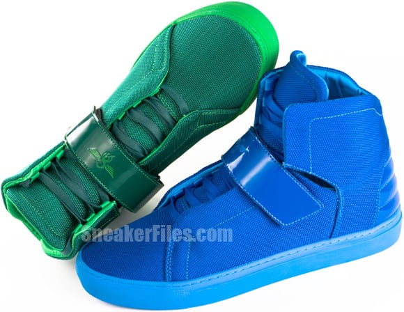 The Geno will release in a handful of different colors, two of the colors are shown (electric green and primary blue). Patent leather is placed, to give the shoe a “pop” feel, while the outsole takes a more “dull” approach.