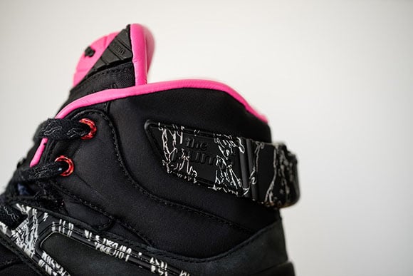 This glance at the Crossover x Reebok The Pump we can see that the use of black is in full effect while just a bit of white and grey make up for a camouflage design overall, a darker color blocking we are not use to seeing on the Reebok Pump. But the brand did add some accents of pink that are placed on the sole, liner, Pump and 0 and 5 on the heel, representing the year Crossover was established (2005).