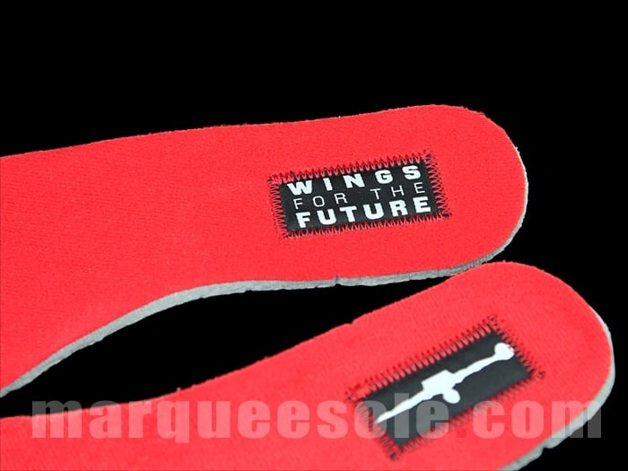 After holding a successful auction for their first collaboration, we can only assume these will release in similar fashion. The detail put into the shoe is incredible. Featuring a Swoosh-less leather & nubuck upper along with a dab of elephant print really set these off nicely. Custom graphics and gradient designs work in tandem with the color blocking and smaller details on the tongue patch logo and insole which show off the Wings for the Future patch and the silhouette on the original Wings poster.