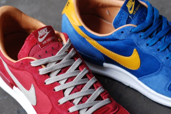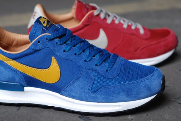 The two pair set features “Storm Red/Sandtrap-Sail” and “Court Blue/Del Sol โ Sail” versions, both of which utilize premium suede, mesh, nylon, and hits of leather, on the heel and Swoosh, as well as a soft tan variation lining the collar. Originally released in 1981, these classic runners would look great with some jeans and a button-up or chilled out with a sweatsuit.