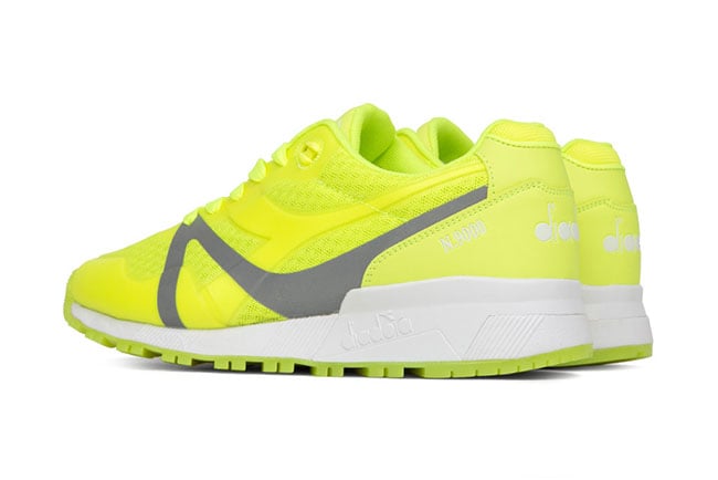 The Diadora N9000 MM version uses a mixture of nylon and synthetic material throughout the uppers which keeps performance use like outdoor activities in mind. The standout on this pair is the shade used which is Bright Yellow and runs ramped on the base, tongue and outsole. Silver is then added through the sides along with White through the midsole. The last touch is the Diadora branding on the tongue using the traditional colors of Italy.