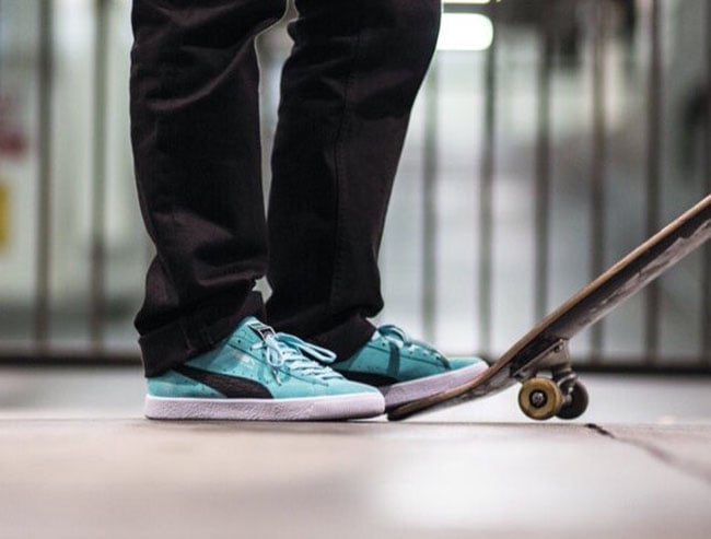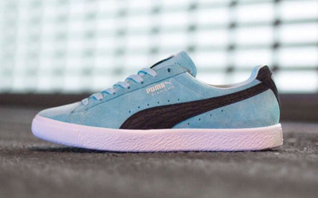 Earlier, Nicky Diamonds took to Twitter to share a teaser photo of the upcoming collaboration with Puma. Shown was two popular models, the Puma Suede and Puma Clyde. There will be three different main colors used, one being the popular Tiffany hue, while another is dressed in Black and the third will have a Cream shade. Each will also have the Diamond Supply branding on the tongue.