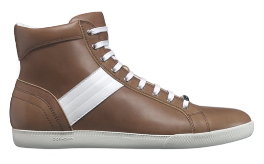 Set to release along with other fine goods from Dior’s Spring/Summer 2012 collection, these luxurious brown leather ankle boots and high top sneakers define excellence. Adding an elegant color to a white rubber midsole, each model is made to perfection with tonal stitching, signature branding, and leather that is sure to last for years to come. Are your ready to step in Dior?