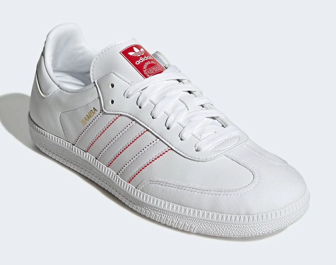 The two adidas Samba pairs by Disney will come with animal-free ingredients, allowing for a vegan sneaker option. Utilizing White leather across the upper, Metallic Gold lands on the โSambaโ branding across the lateral side. Next, Mickey Mouse lands on the tongue labels, while Minnieโs pair comes with a Red tongue label. Both shoes will feature the character’s hands forming a heart when the right and left shoes are side-by-side. Other details include co-branding on the insoles and a White rubber sole.
