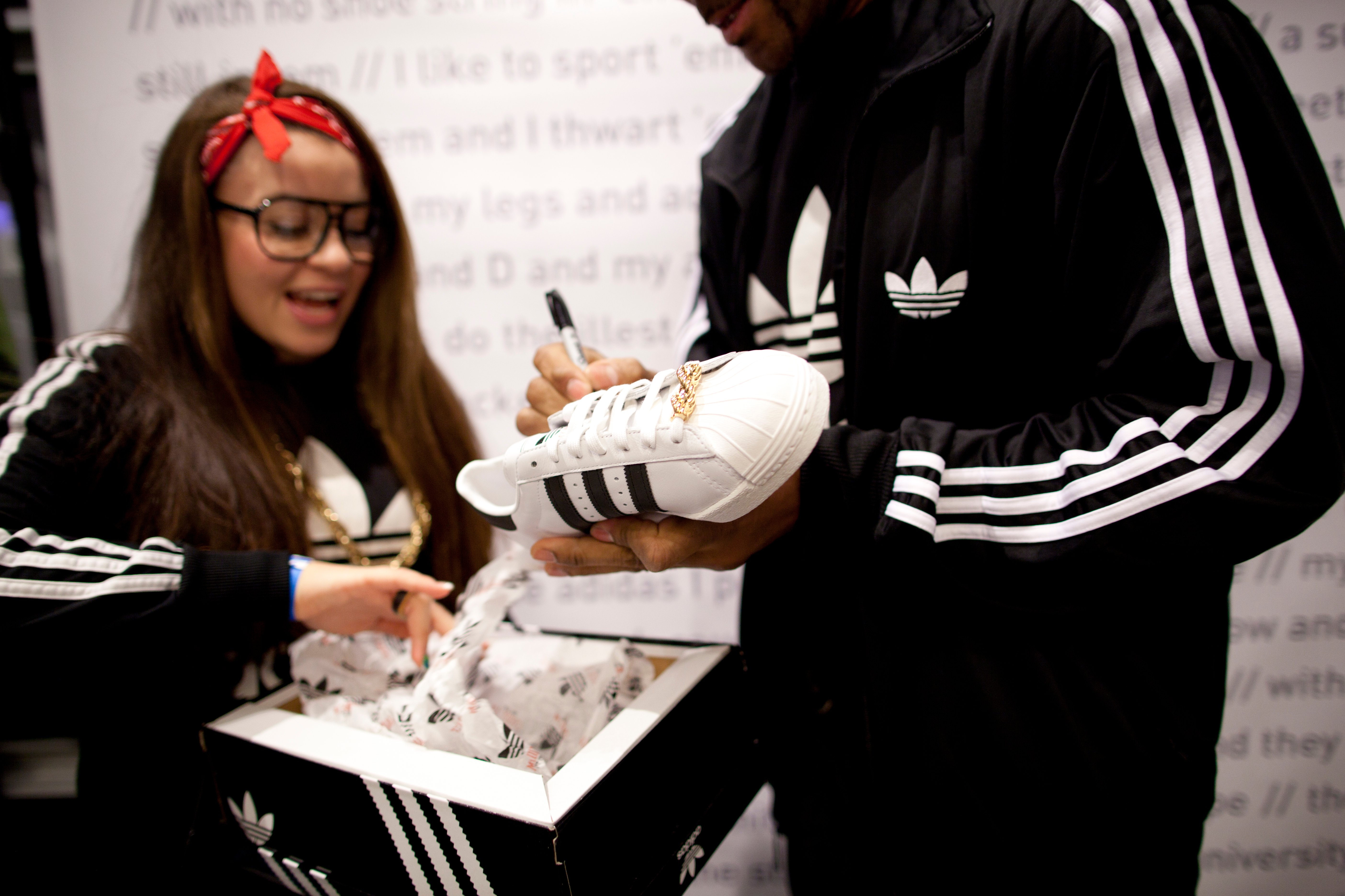 Last Friday, adidas and DMC celebrated the launch of the “My adidas”ย 25th Anniversary Superstar with 2 in-store appearances; one at Dr. Jay’sย in Harlem and the other at the adidas Originals store in SOHO.