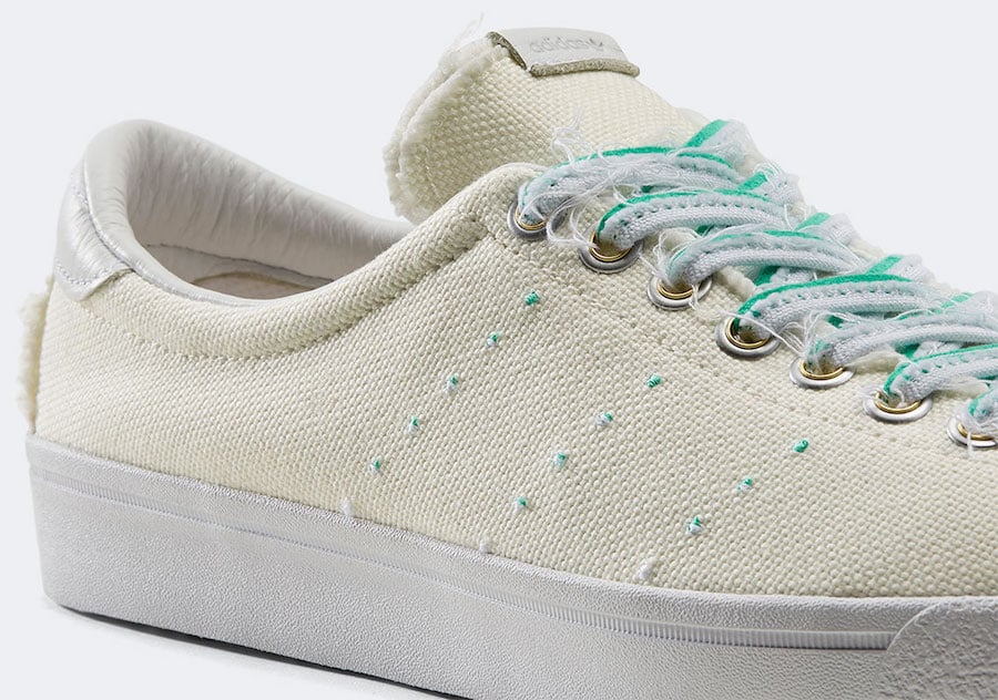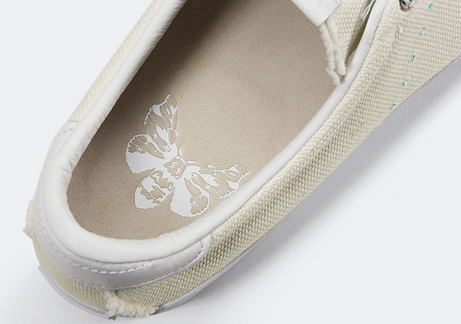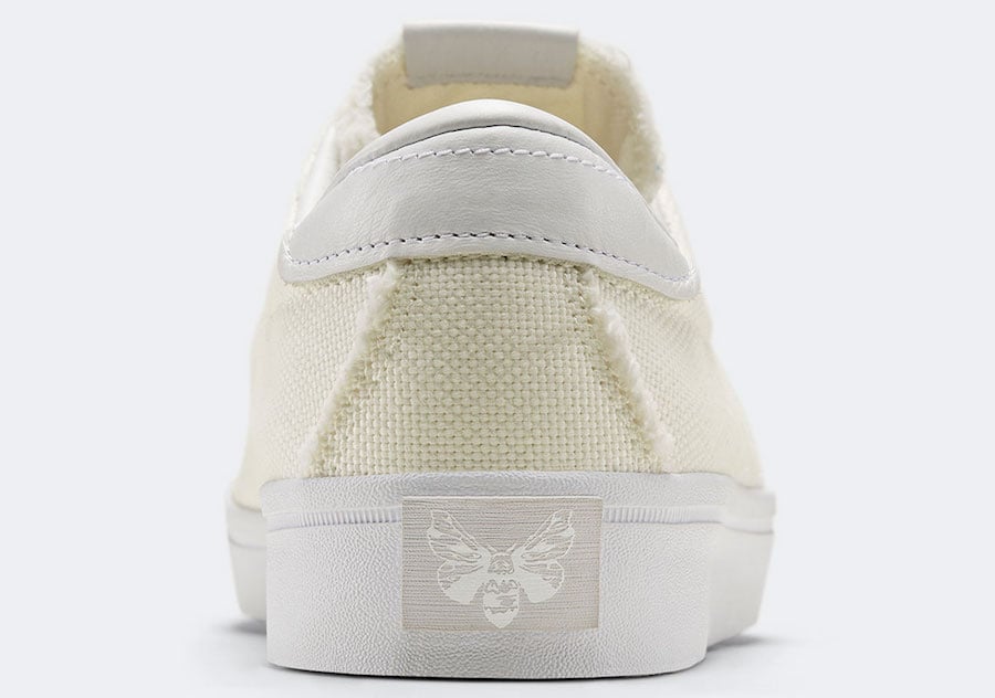 Seeking to tell a story through design, the shoes feature a series of deconstructed details, like uneven stitching, inside-out golden eyestays, and a custom 3-Stripe mark that evokes hand-painting. Heightening a sense of depth and character, the edges of the canvas are not stitched down, allowing them to fray over time. Further bringing the theme of wear to life, a moth – the symbol of the collaboration – appears on the heel bumpers and insoles of the footwear. Each pair arrives inside an inside-out adidas Originals box that opens with a tear strip and comes replete with three sets of custom shoelaces designed to fringe with wear.