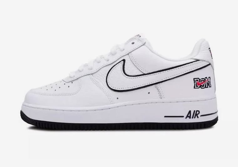 This Nike Air Force 1 Low features a White leather across the upper while the Nike Swoosh across the panel is layered in Black. DSM and NYC branding with a Red Nike Swoosh lands on the tongues, on the heel and lateral side of the heel. Completing the look is Black running across the outsole.