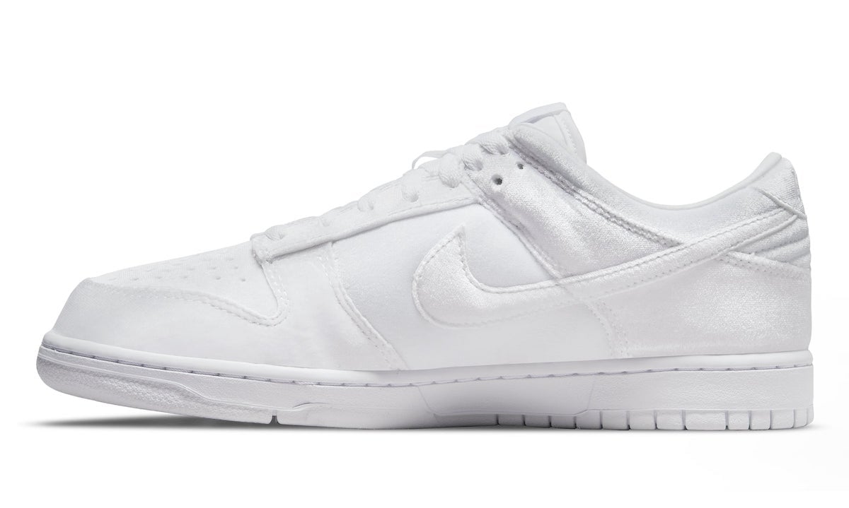 Update (1/29): Dover Street Market has unveiled its Nike Dunk Low Velvet collaboration in โTriple Whiteโ and โTriple Black.โ Originally scheduled to release in Summer 2021, the pair is now rumored to launch in Spring 2022.