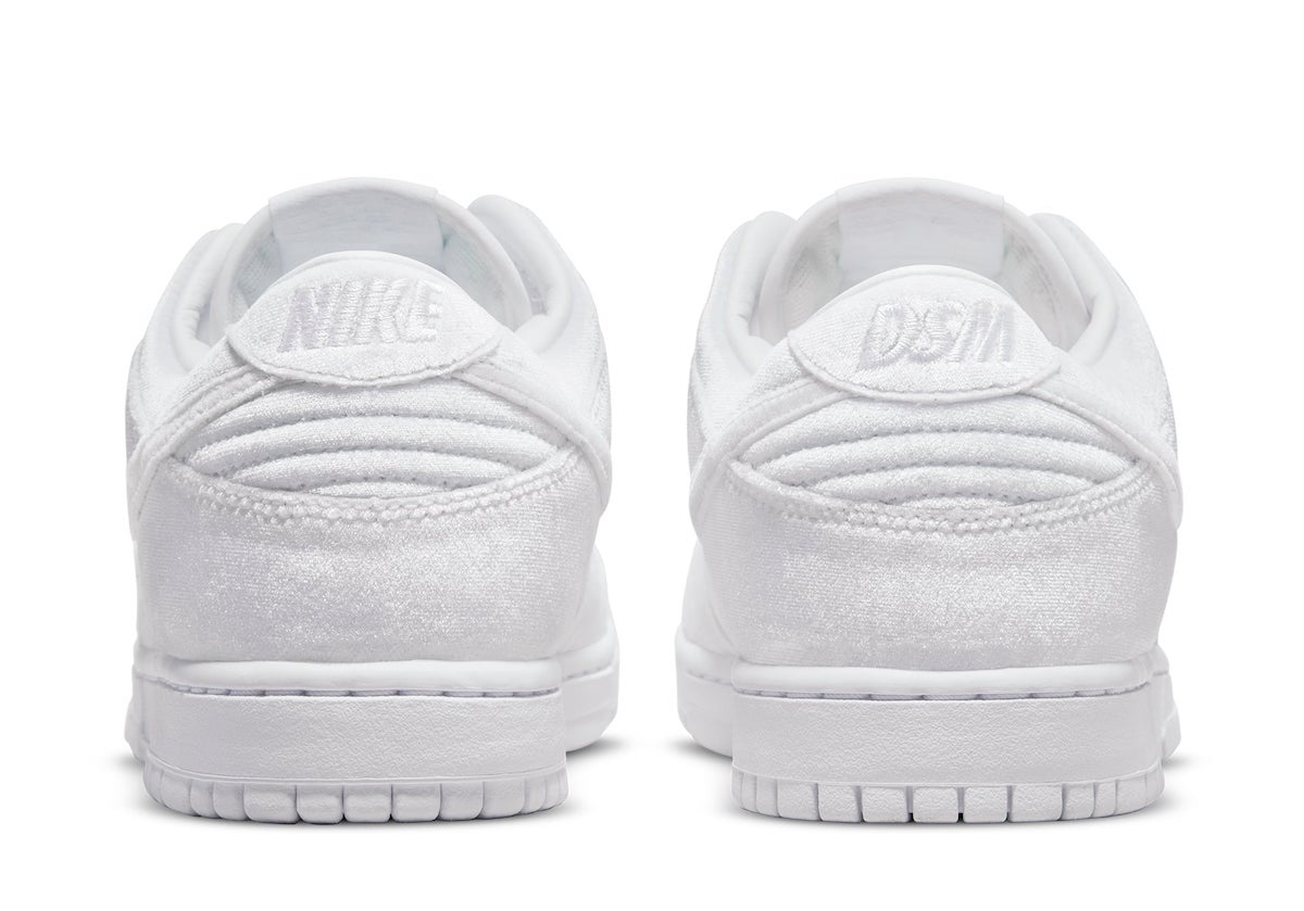 Update (2/3): The online raffle for the DSM x Nike Dunk Low Velvet Pack in White and Black is now open at DSM NY and DSM London. It will close on February 5th at 11 AM EST.