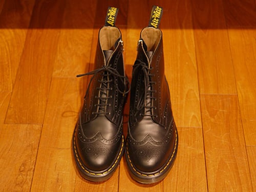 Last month we showed you a teaser of legendary boot maker Dr. Martens’ collaboration work with frequent Nike collaborator, Uniform Experiment. Now, we finally have a full length preview of the upcoming Spring/Summer model. The classic high top DM silhouette has been fitted with wingtip detailing, and features contrast stitching on its midsole. Little is known about the shoe’s release details, so make sure you stayed for more information as it becomes available.