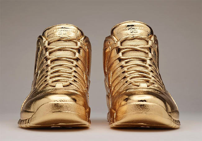 None other than artist Matthew Senna created this 24K Gold Air Jordan 10 OVO for Drake. Using the OVO 10s, the shoes are completely covered in 24 Karat Gold which is said to weight about 100 pounds. So we don’t expect anyone wearing them. As you probably imagined, this is a 1-of-1 that was made for Drake and the artist probably won’t be supplying anymore, however he has custom dipped other Air Jordan’s in Gold.
