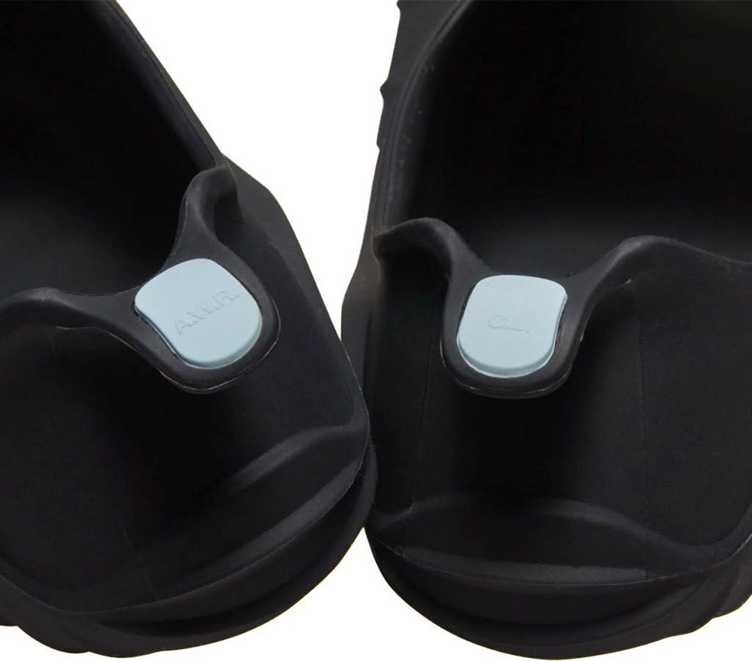 Looking closer, this Nike Swim Fins features a shorter fin blade to help the swimmer’s efficiency and speed of kicks. They also come with softer and more flexible areas for maximum propulsion. This pair comes dressed in mostly Black with NOCTA branding across the front. Other details include โA.W.R.โ and โC.L.โ on the Blue heel tabs.