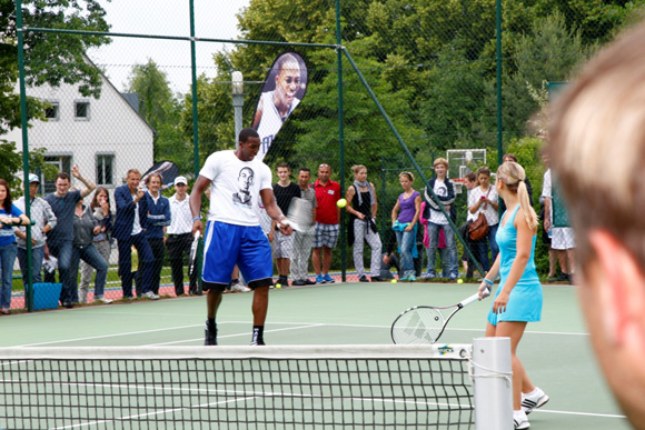 After the opening, Dwight met employees and a few lucky ones played with Dwight in various sports including tennis, soccer, golf and – of course – basketball.