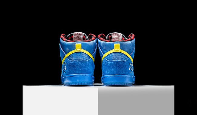 Select Nike SB retailers will have the Nike Dunk SB High x Familia ‘Blue Ox’ aka ‘Paul Bunyan’. You will need to call your local shop ahead of time. A few online retailers will launch them tomorrow morning including NikeStore and Rise.