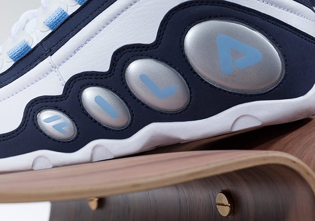 Yet another classic, this Fila Bubbles comes dressed in a White, Navy and Light Blue color combination. Known as Bubbles due to the large bubbles on the side which in this case is done in Silver with Fila written out in Light Blue. White runs across the base while Navy lands on the mudguard, liner and stripe.