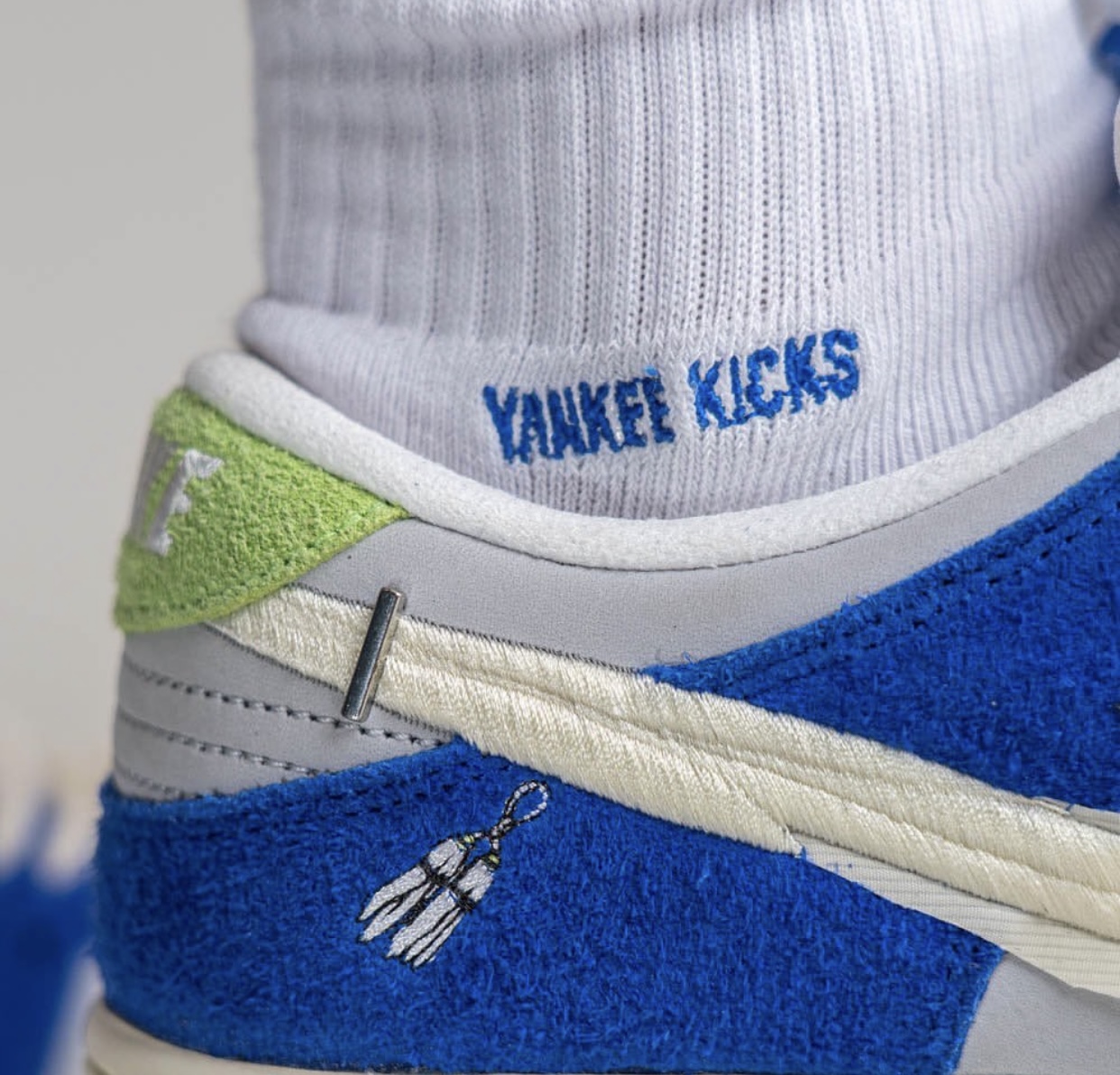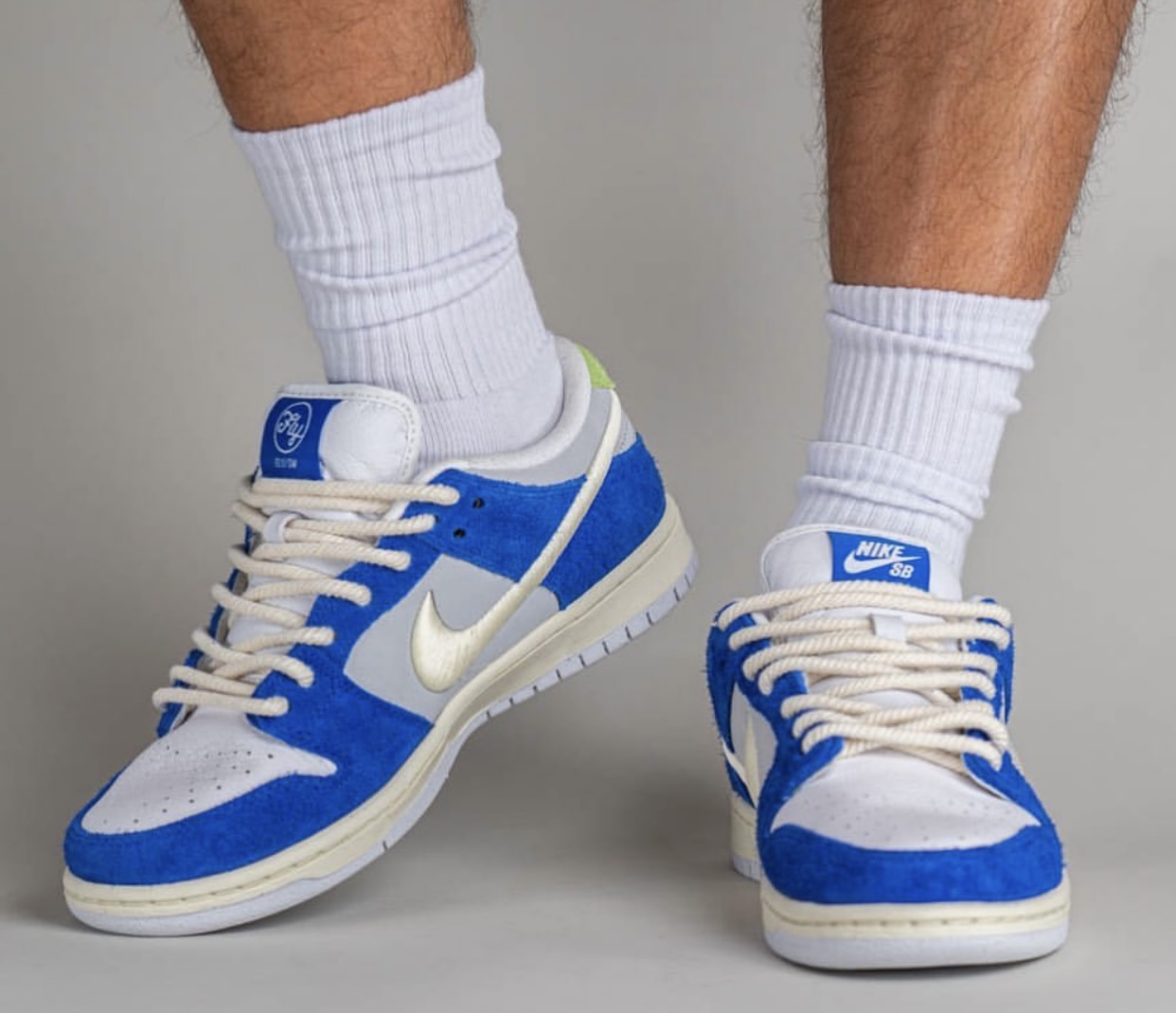 The Fly Streetwear x Nike SB Dunk Low will feature Blue shaggy suede on the overlays while Grey lands on the base. Next, the panels have multiple embroidered Swoosh logos, Chinese characters are printed on the insoles, and another logo lands by the heel. This pair will also come with special packaging with co-branding.