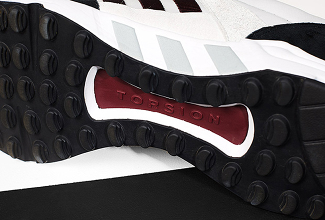 This collaboration with Footpatrol and adidas is references footwear inspired by London and has chosen the EQT Running Cushion 93 while dressing them up in a similar color combination as the classic adidas London Runner. Constructed with nylon and mesh through the uppers while pigskin suede and nubuck lands on the overlays which is done in Black and Grey. Burgundy hits are also seen which gives them a nice touch. Adding contrast, Footpatrol switched the Three Stripes webbing on the medial panel to Black. On the heel is both the adidas Equipment and Footpatrol Gasmask logos. Other details include a White midsole, 3M reflective accents and Black hitting the outsole.