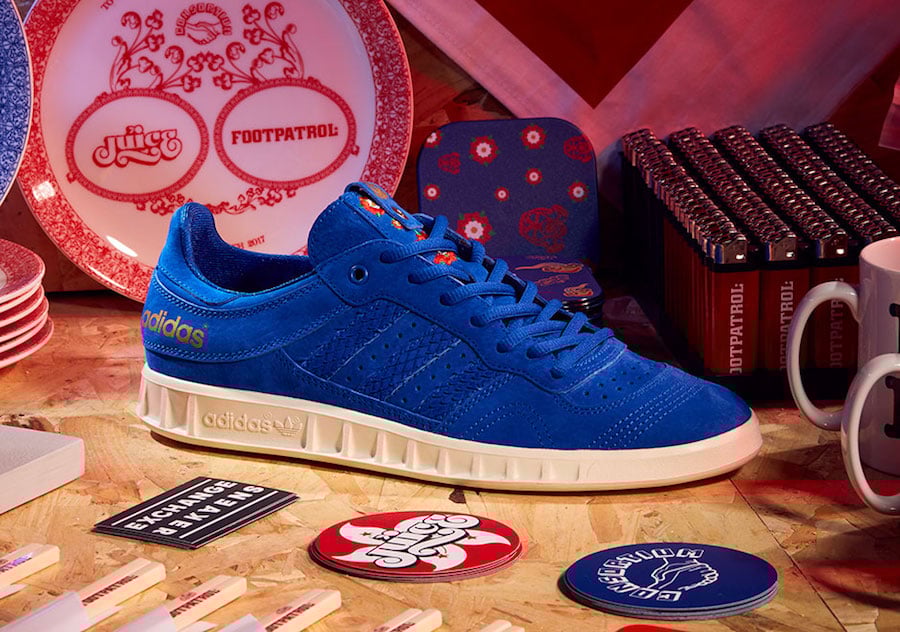The adidas Consortium Sneaker Exchange connects Londonโs Footpatrol and Hong Kongโs Juice which will collaborate on two models: adidas Matchcourt Mid and the adidas Handball Top.