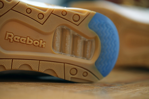 Featuring a premium suede with a chalk look paired with goat leather. A gum like shade is placed on the Reebok Pump and on the heel. Black is also present on the heel with the sole having a few translucent blue sections.