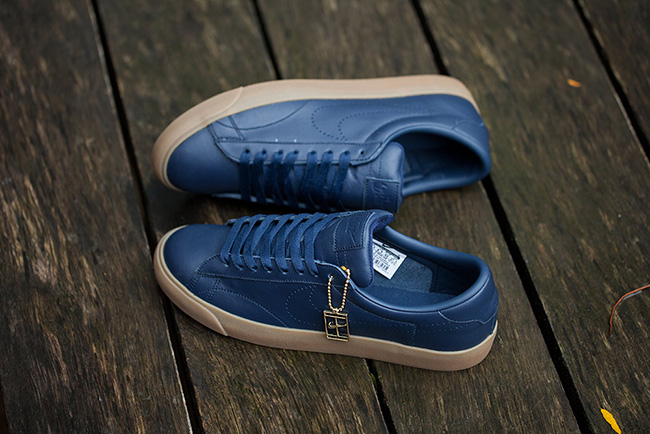 Using premium leather uppers that either come in dark blue or dark red along with tonal stitching and gum midsole and outsole. Other details include NikeCourt branding and a gold detachable pendant.