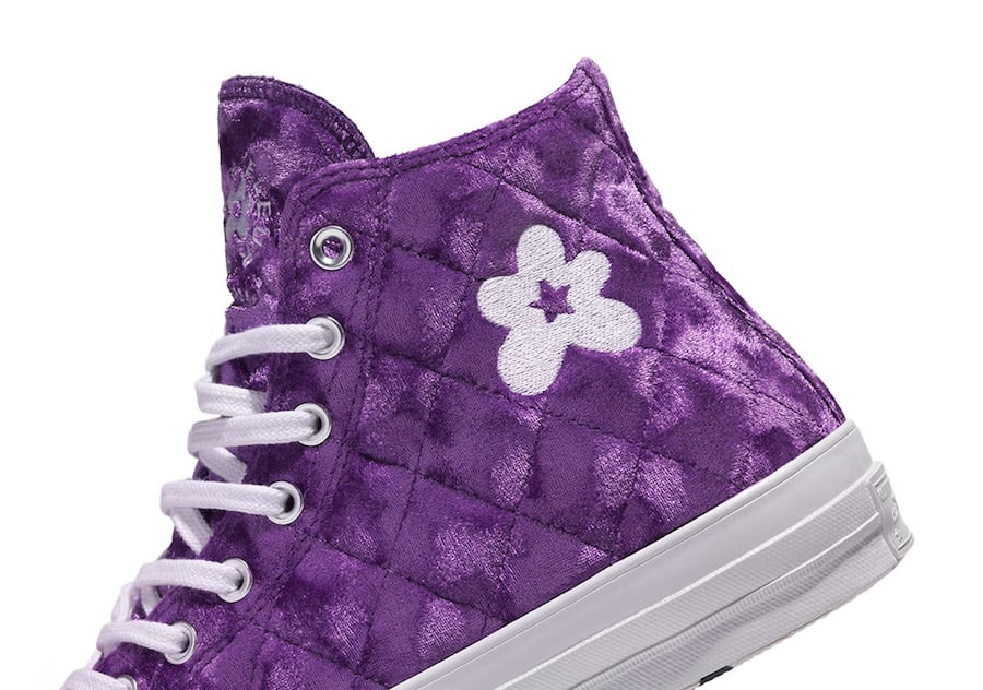 You can expect Tyler, The Creatorโs GOLF le FLEUR x Converse Quilted Velvet Collection to release at select Golf Wang retailers and online at Converse.com on May 17th. Below you can check out more images for a closer look.