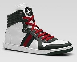 New Gucci high top leather sneakers have dropped for the fall 2009 season. The two pairs (Nero/Black, Verde/White) are a throwback to the house’s vintage designs. They don’t have the frills of Gucci Native High-Top but it’s way cooler.ย The leather sneaker comes in black and white versions with the classic interlocking GG logo at the top of the tongue and the signature Gucci Green/Red/Green web. Sometimes simple is sleeker. Read more to see the White/Verde colorway..