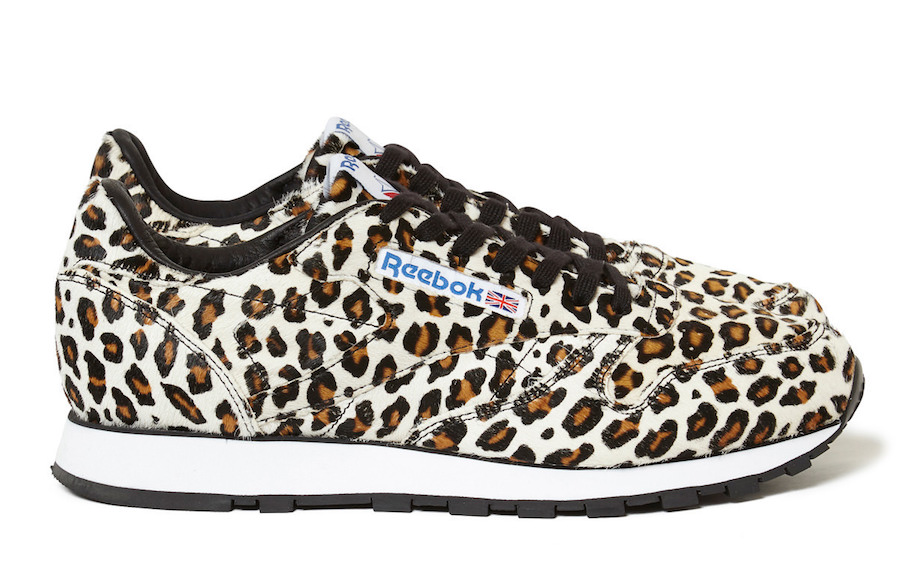 As you can see, this Reebok Classic Leather features a hairy calf suede upper while covered in leopard print. In addition they come with Black and White laces. Other highlights includes White on the midsole while Black leather lands on the liner and the same shade runs across the outsole.