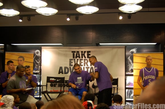 For the main event, 2009 Rookie of the Year Tyreke Evans walked in to an anxious and riled up crowd. After getting settled in, Evans answered some general questions like who would win in a one on one shootout with Ticha Penicheiro (of course he said himself) and what was his plans if the 2011-2012 NBA Season was canceled. Evan’s was unsure at the moment, but stated playing overseas is an option.