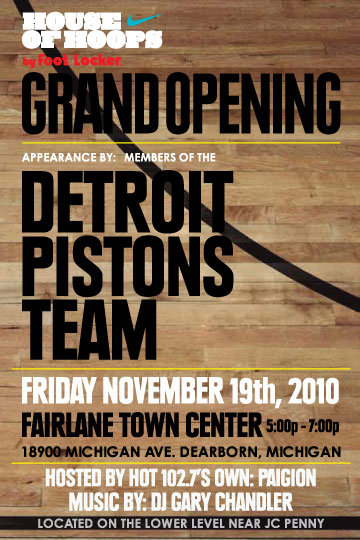 Seems like theres going to be a House of Hoop in almost every state, with new locations in Orlando, Baton Rouge, Winston-Salem and Raleigh and now in Detroit. This friday will be the grand opening for the House of Hoops in Detroit at Fairlane Town Center in Dearborn. 102.7’s Paigion will be hosting this event, along with special guest apperence by the Detroit Pistons basketball team and music by DJ Gary Chandler. So if your around town this friday afternoon, go ahead and swing through HOH Detroit and didย I mention the Nike Air Max Lebron VIII ‘South Beach’ will be in stock.