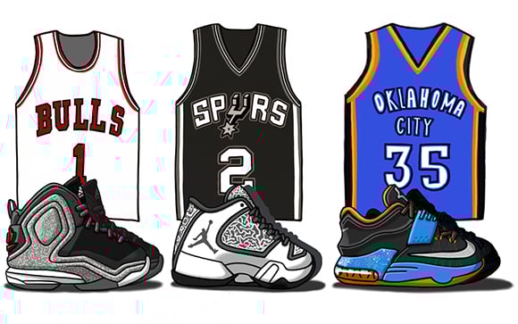 Yesterday the 2014-15 NBA Season kicked off while only six teams playing each other. You can expect today to host more games and superstars taking court like LeBron James, Blake Griffin and others. Have you ever wondered what a illustrated comic style drawing of sneakers would look like? If so, today is your day.