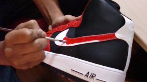 You guys are the best in customizing kicks. The paint on the shoes are of the paint thats on the shoe when it arrives at the store. Its not all shiny and fake looking.