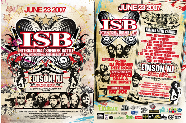June 23rd the International Sneaker Battle will take place in New Jersey at NJ Convention and Expo Center. Prepared to be amazed at what you will see on display, Original and Rare sneakers along with insane customized kicks. Fat Joe is the host, but other celebrities like Ghostface, Dipset (Cam’ron, Jim Jones, and Juelz Santana). Live DJs are Q-Tip, DJ Premier, Pete Rock.