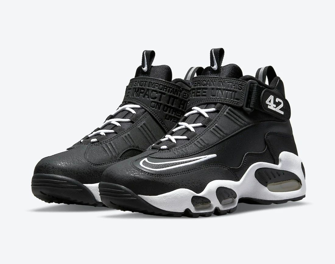 In 2021, Nike continued the tradition with the release of the Nike Air Griffey Max 1 โJackie Robinsonโ edition. The Air Griffeyโs take on a sleek, Black and White look, with Jackieโs quote, stamped on the ankle strap reading โโThereโs not an American in this country free until every one of us is freeโ. This time, Nike has decided to reverse Griffeyโs iconic number to reflect that of Jackie โ โ42โ. The number is prominently displayed on the heel.