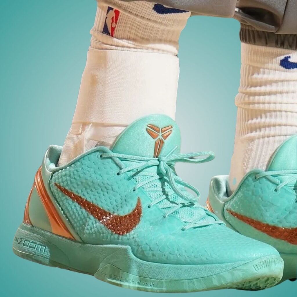 New photos of the โStatue of Libertyโ Kobe 6 Protro have arrived. The photos showcase its Hyper Turquoise upper and Metallic Copper detailing. A PE for Jalen Brunson, a release will occur during the Holiday 2025 season.