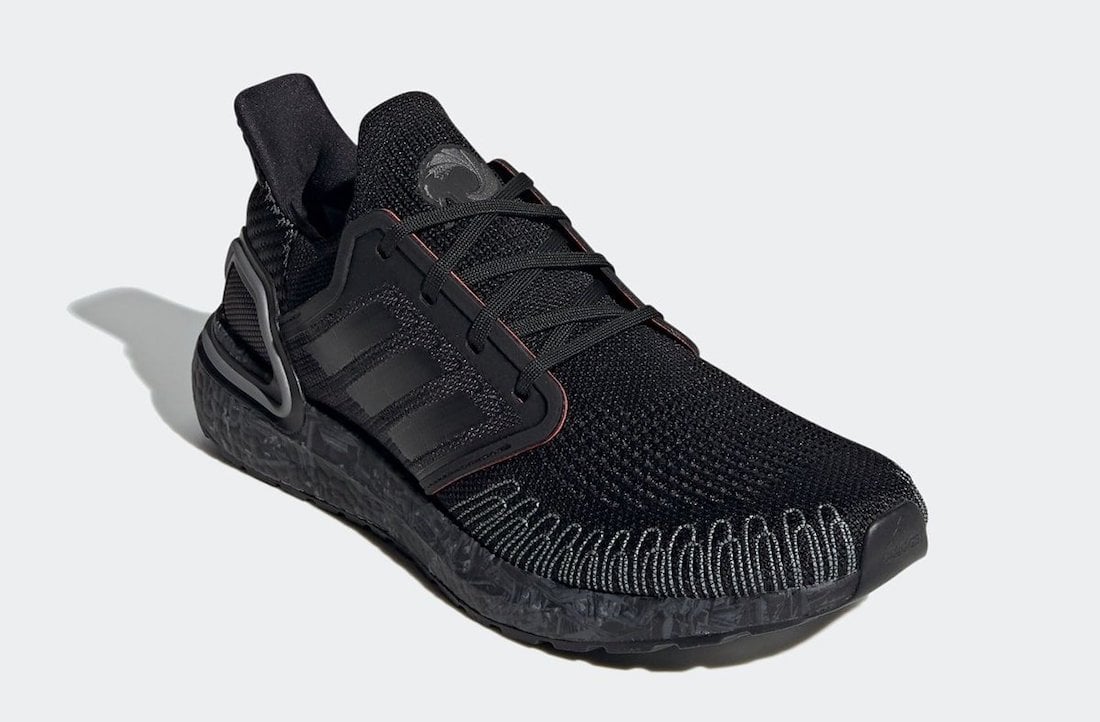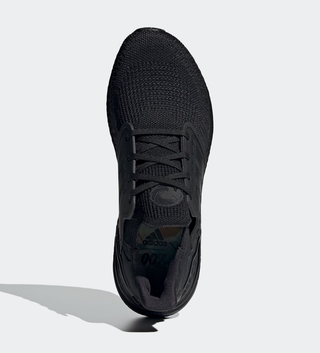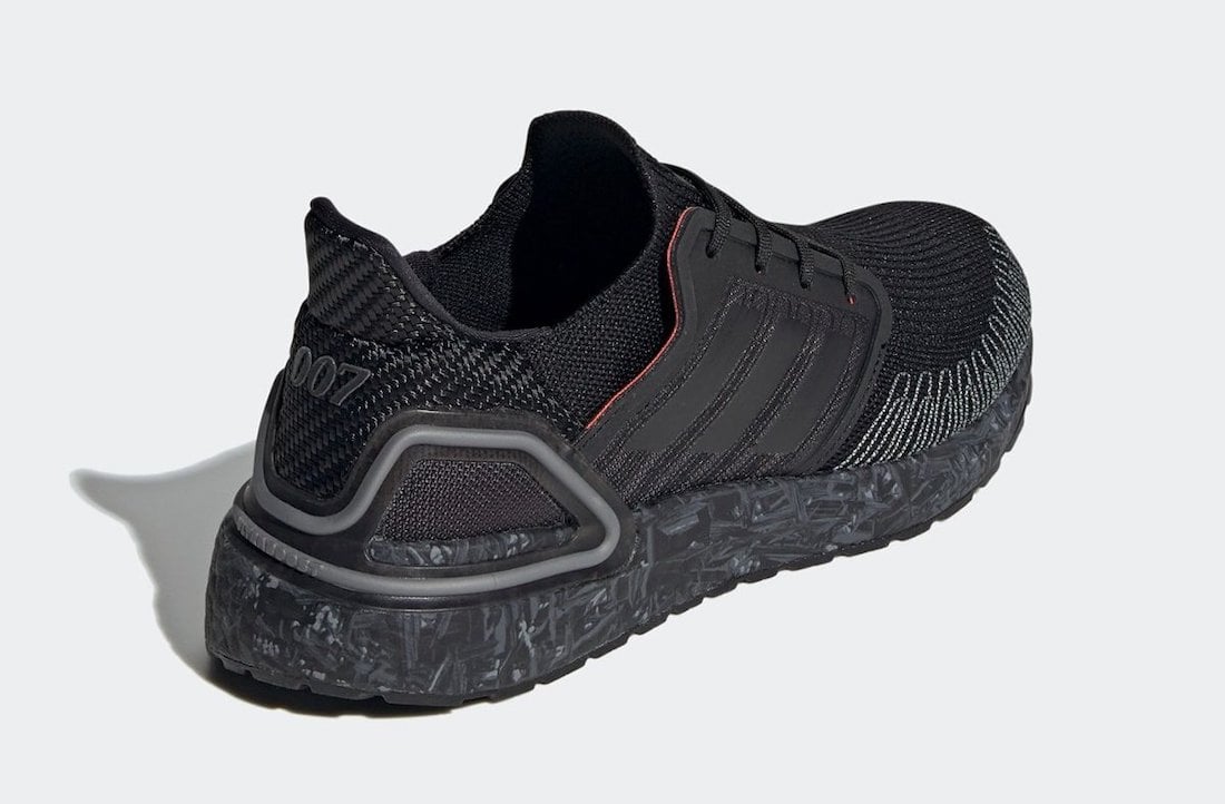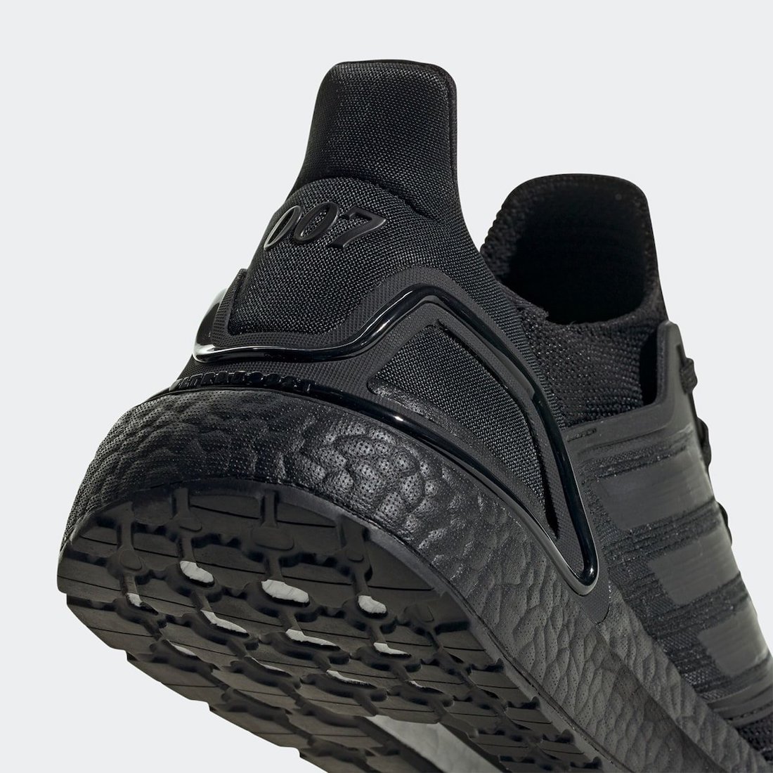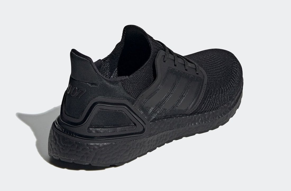 Looking closer, this adidas Ultra Boost 2020 features Black throughout while also lands on the lace cage, Boost midsole, and rubber outsole. Grey is applied to the heel clip, and White stitching wraps the toe while โ007โ lands on the heel, which finishes the look.