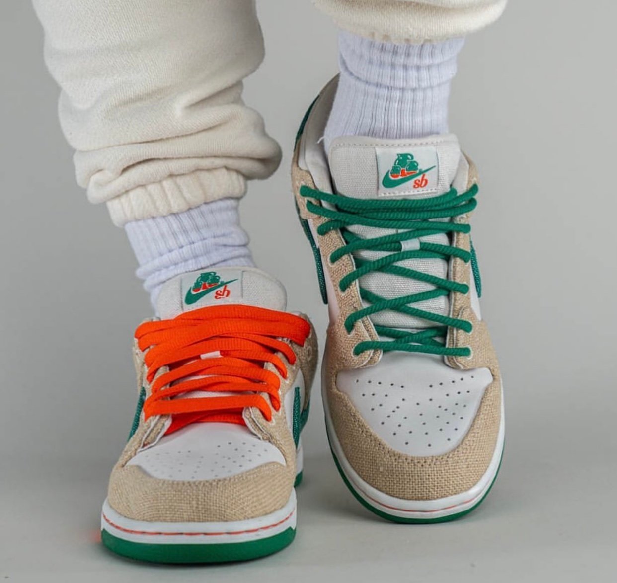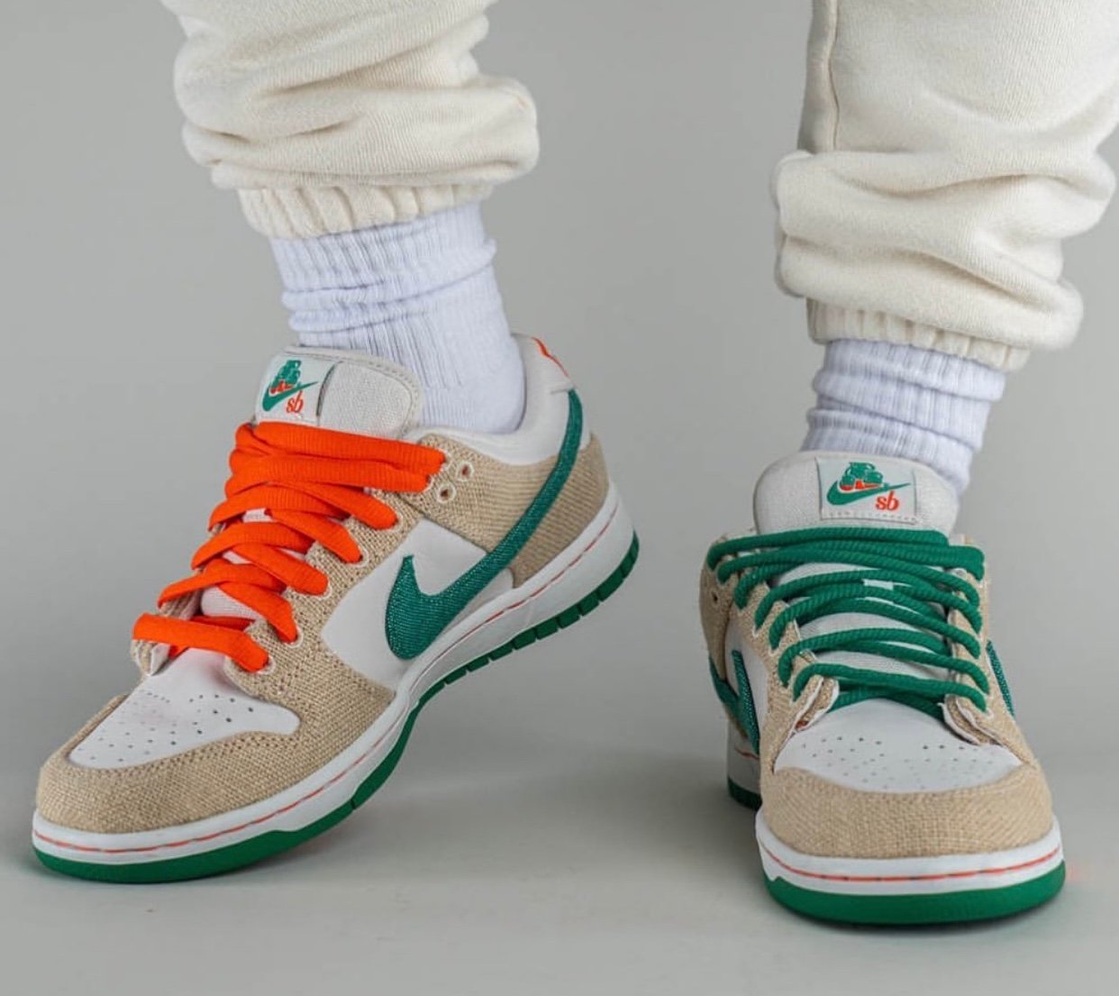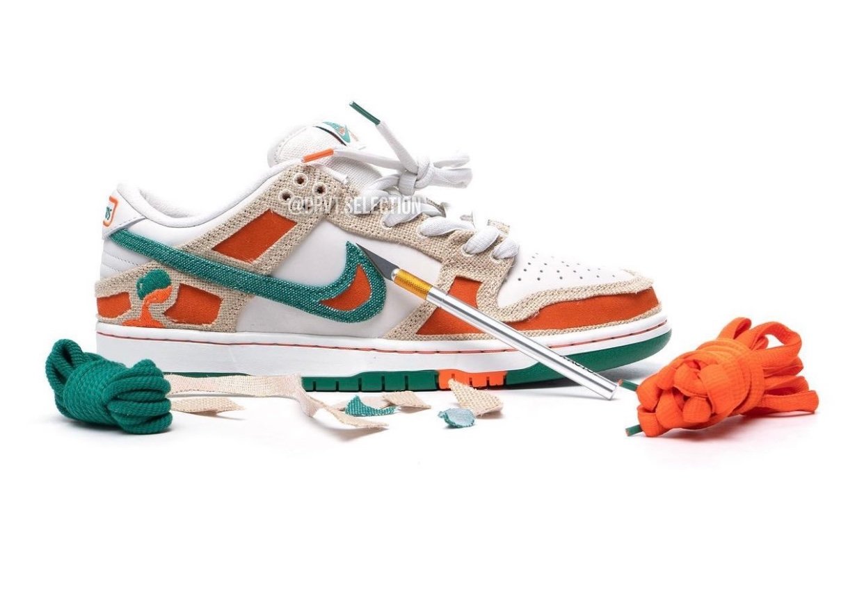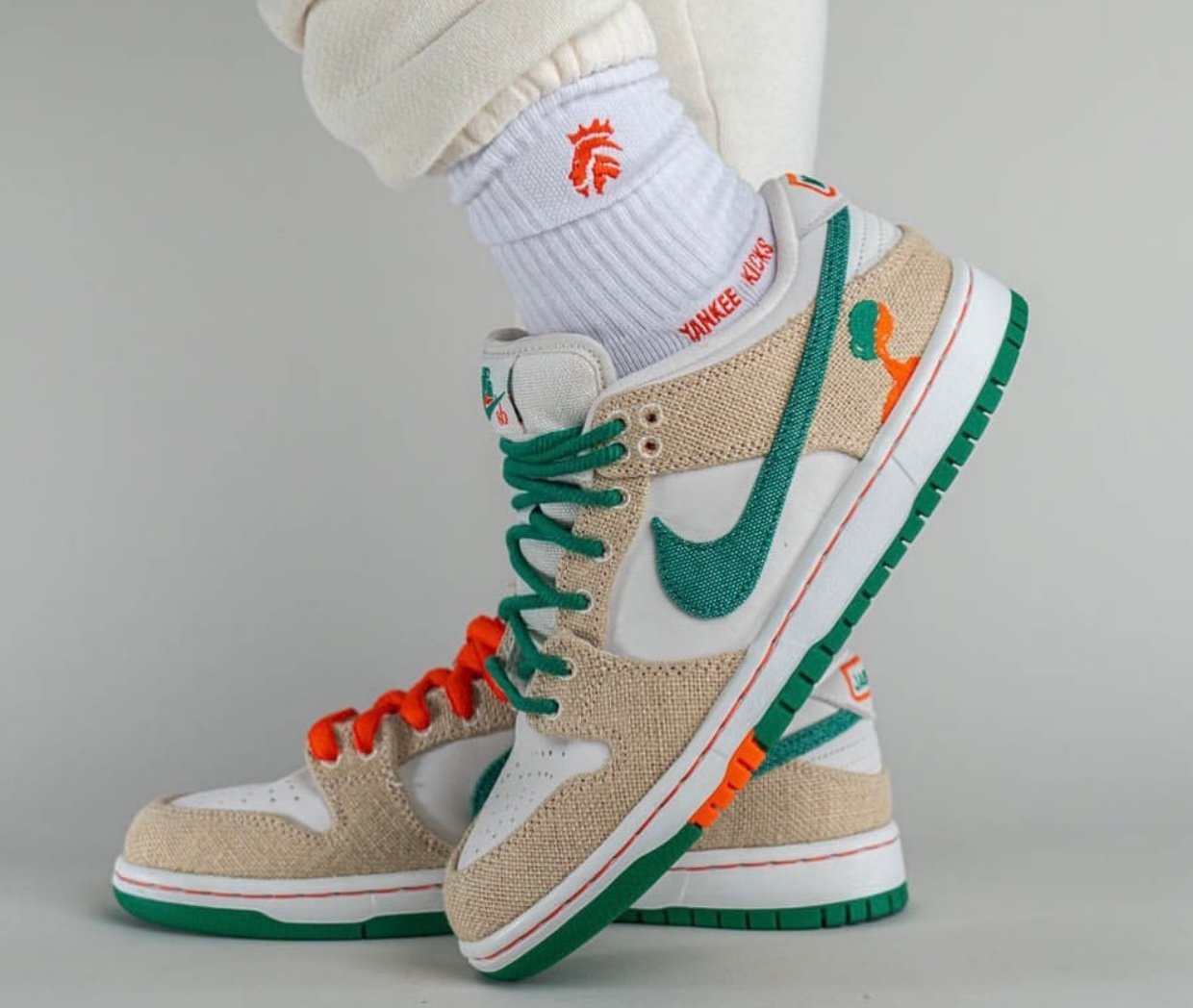 This Jarritos x Nike SB Dunk Low comes dressed in a Phantom, Safety Orange, and Malachite color combination. Utilizing leather on the base while hemp appears on the overlays. Next, we have co-branding throughout, while each pair comes with special packaging.