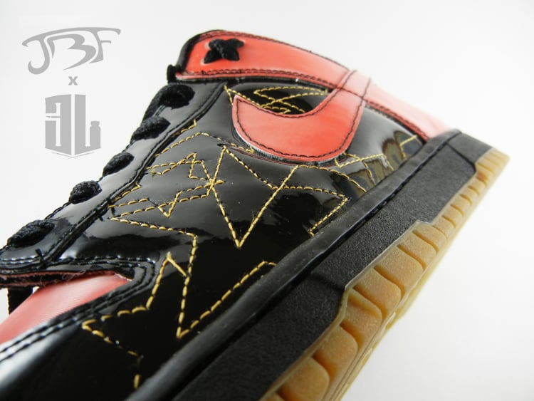 JBF Customs & EmmanueLabor just recently finished a beautiful collaboration featuring the Nike Dunk Low in an ASG theme. Both designed the sneaker together then went to work putting them together, JBF took care of the ‘East’ while EL took care of the ‘West’.