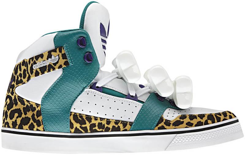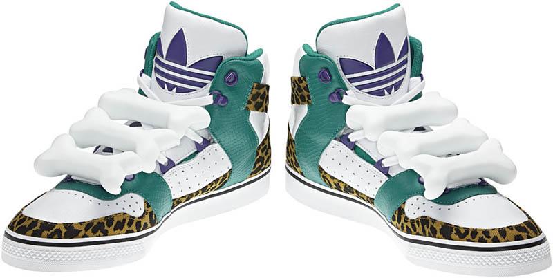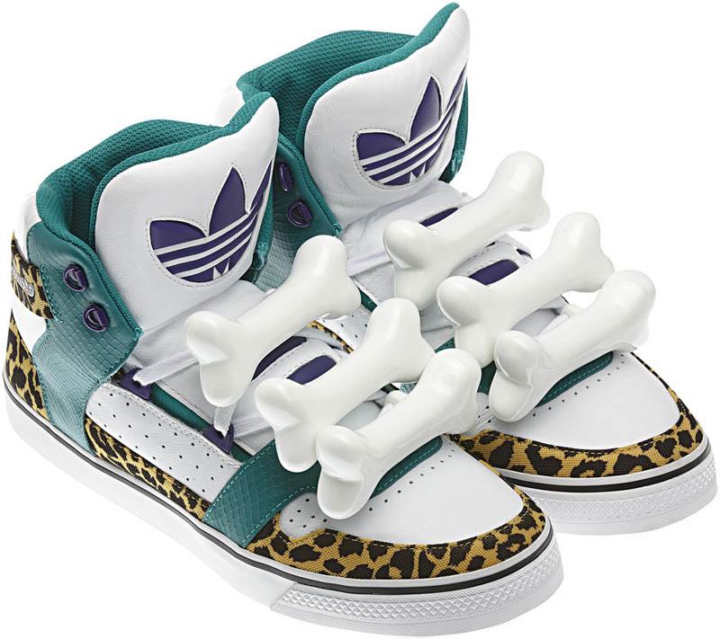 The latest model is the Jeremy Scott x adidas Originals JS Bones which, as you can see, takes its namesake quite literally. The white leather base along with green and purple accents pop off quite nicely. Add in the leopard print around the mudguard and bones atop the laces and you have yourself a pair of sneakers that looks to take inspiration from the Flintstones.